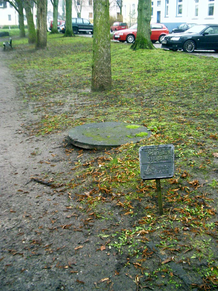 Der öffentliche betonierte Deckungsgraben am Augustenburger Platz (heute Carl-Herm.-Gosling-Platz) / Augustenburger Straße wird bis dato in der Tabelle als unbekannt bezüglich seines Zustandes geführt. Unter einer Betonplatte soll sich jedoch ein verfüllter Hohlraum befinden. Sind dies Reste des Deckungsgrabens? Informationen gesucht. Hier |