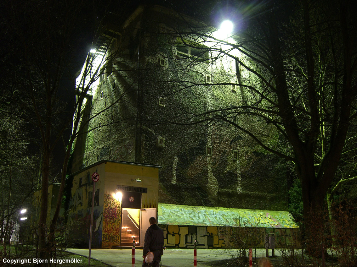 Eine eindrucksvolle Nachtaufnahme des Osnabrücker Luftschutzturmes an der Oststraße konnte mit freundlicher Bereitstellung von www.untertage-übertage.de eingefügt werden: Hier