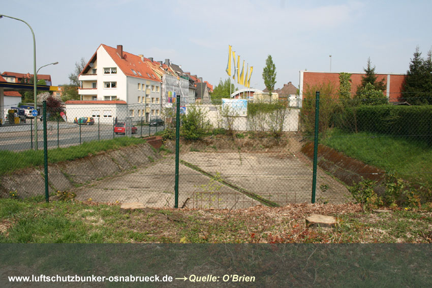 Ein weiterer Kleinbunker wurde im Nordbereich des Geländes der Stahlwerke Klöckner Osnabrück nachgewiesen. Heute ist das Gebiet das Werksgelände der Firma "Magnum". Ob der Bunker noch existiert, konnte bisher nicht herausgefunden werden, eine Entfernung nach dem Krieg ist jedoch sehr wahrscheinlich. Das Bauwerk wurde unweit nordwestlich des noch vorhandenen ehemaligen Klöckner-Werkluftschutzhochbunkers Ost errichtet. Vielen Dank an www.untergrundosnabrueck.de für den Tipp. Hier Ein weiterer erhaltener Deckungsgraben an der Kokschen Straße im Stadtteil Wüste wurde nachgewiesen. Hier