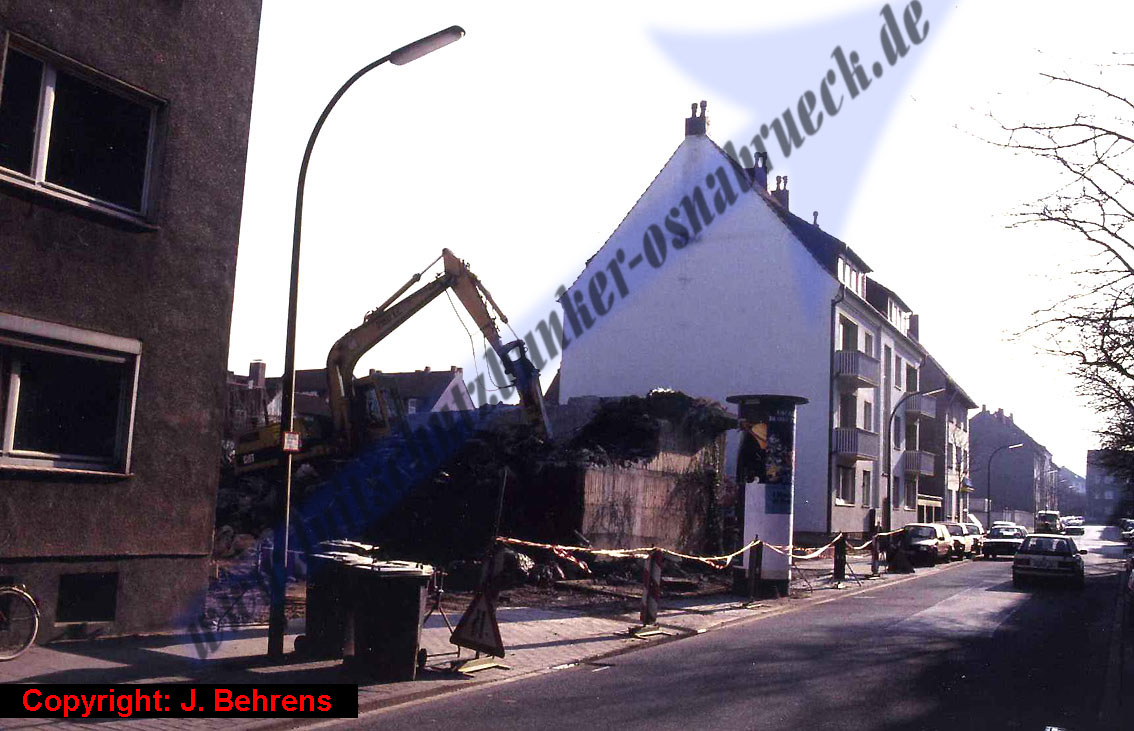 Zwei Aufnahmen von Anfang 1991 während der Abrissmaßnahmen des FLUKO-Bunkers an der Rudolfstraße Osnabrück konnten eingefügt werden. Vielen Dank an Herrn Behrens für die Bereitstellung der Bilder! Hier