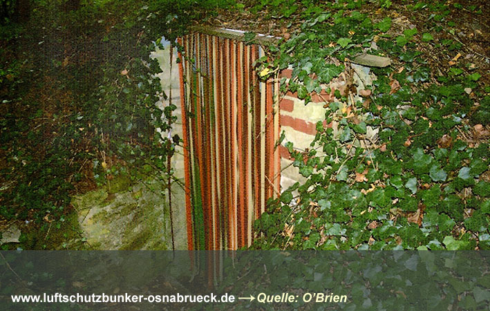 Aufnahmen eines betonierten Deckungsgrabens am Bruchweg im Osten Osnabrücks wurden eingefügt. Hier Dank wieder an unsere Partnerseite www.untergrundosnabrueck.de. |