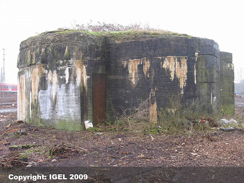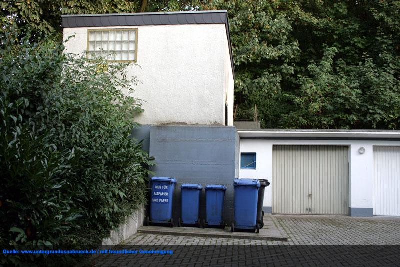Hinter dem Schnatgang zwischen Wüstenstraße (im Dritten Reich Hans-Rickmers-Straße / 1946 in Wüstenstraße umbenannt) und Kiwittstraße existiert auf den heutigen Grundstücken 10 und 12 direkt an einem Garagenhof ein gemauerter runder Bunker mit zwei gegenüberliegenden Splitterschutzvorbauten. Vielen Dank an Ingo Danielzik für den Hinweis! Es ist bis dato davon auszugehen, dass dieser Rundbunker, der genau die Seitenmaße des LS-Turmes Hoffmeyerplatz hat, auf das bereits vollendete Fundament des bisher nur als geplant verzeichneten LS-Turmes Schnatgang / Hans-Rickmers-Straße gebaut worden ist. Das Bauwerk wurde nach Aufgabe des Vorhabens, einen dreigeschossigen Turm, wie den unweit östlich realisierten LS-Turm Hoffmeyerplatz zu errichten, als gemauerter Rundbunker gebaut, weil wohl kein Beton mehr zur Verfügung stand und in gerade dieser eingeschossigen Form errichtet, weil im zerbombten Stadtteil Wüste 1944 ohnehin nicht mehr viel Bürger wohnten. Ein als LS-Turm geplanter Rundbunker... Bis auf weiteres wird dieses Objekt als Rundbunker auf dem Fundament des minimal begonnenen Turmes Schnatgang der Osnabrücker LS-Turmbaureihe geführt. Sehr viel spricht dafür. Wir werden Sie über die Entwicklung informieren und selbstverständlich die kommenden Tage Fotomaterial einfügen. Hier Bei Virtual Earth: Luftschutzturm Schnatgang Osnabrück (nicht fertig gestellt, an seiner Stelle Rundbunker errichtet) Zur besseren Ansicht in Windrose auf S klicken! Weitere Aufnahmen des äußerst authentisch erhaltenen LS-Kellers in der Martinistraße konnten eingefügt werden: Hier Der Abriss des Reichsbahnrundbunkers 2 in Rheine war für heute angesetzt. Jedoch trat im Laufe des Tages noch keinerlei Abrisstätigkeit ein. Wir berichten weiter.