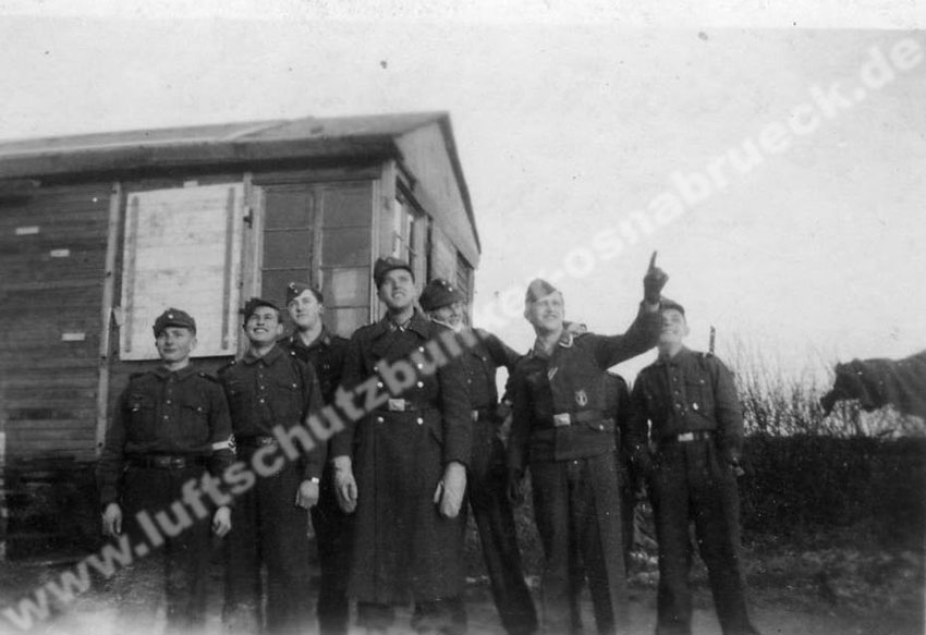 Eine seltene historische Fotoaufnahme aus dem Bereich der ehemaligen Flakstellung auf dem Lammersbrink nahe dem Varusturm bei Georgsmarienhütte wurde eingefügt. Die Stellung war zusammen mit mehreren anderen Flakstellungen für den Schutz des kriegswichtigen Georgsmarienhütte zuständig. Die Aufnahme aus frühen Kriegstagen zeigt einen hölzernen Flakturm der Stellung. Dieser Turm wurde höchstwahrscheinlich auf einem verbunkerten Betonfundament gebaut, welches standardisiert realisiert wurde und durch seine Form auch als "Flakstern" bezeichnet wird. Derartige Fundamente sind im gesamten Osnabrücker Umkreis noch heute vermehrt anzufinden. Auch im Bereich der ehemaligen Flakstellung auf dem Lammersbrink sind gesprengte Reste der "Flaksterne" noch heute erkennbar. Vielen Dank für die freundliche Bereitstellung der Aufnahme an Herrn Beermann! Hier