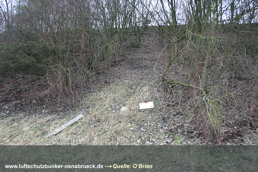 Tiefbunker Rosenplatz OS: Einer der Eingänge wurde im Frühjahr 2011 freigelegt, sowie ein Versorgungsschacht. Der ersichtliche Eingang, es handelt sich dabei um den Osteinstieg in den Bunker, ist nach dem Krieg lediglich teilweise zugeschüttet worden. Nach der Freilegung des Zuganges und einer Begutachtung durch die Stadt Osnabrück wurde dieser dann kurze Zeit später wohl für immer verfüllt. Hier Mehr Informationen zum Objektaufbau unter www.osnabruecker-unterwelten.de