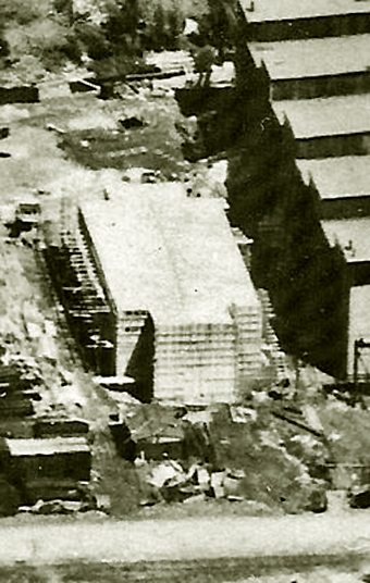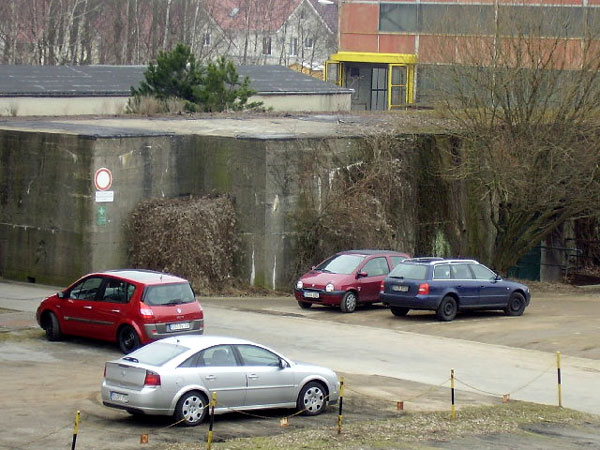 Weiterer, damit sechster Luftwaffenhochbunker nach dem Baumuster wie Hochbunker Rudolfstraße Osnabrück nachgewiesen / Aktualisierung der Informationen: Berlin: Dieser Bunker, der in Berlin-Schmargendorf 1944 für das FLUKO errichtet wurde, ist nicht vollendet worden. Er verfügte über ein Kellergeschoss und zudem wurden zwei oberirdische Geschosse realisiert. Darüber hinaus wurde nur die Zwischendecke zum nächsten geplanten Geschoss verwirklicht. Danach stoppte der Bau. Interessant ist hier der Lüftungserker. Er ist genau doppelt so breit (mit vier statt zwei Luftschächten) wie sonst üblich. Es ist zudem faktisch nachgewiesen, dass der Bunker mindestens 5 Geschosse erhalten sollte (!). Daher hätte die Zuluft aufgrund des größeren Innenraumvolumens über mehr Schächte angesaugt werden müssen. Es hätte sich, wäre der Bau vollendet worden, aufgrund der Höhe fast (oder sogar) um einen "Luftwaffen-Luftschutzturm" gehandelt. Es wäre der höchste bekannte Bunker dieser Bauserie geworden. Rechts im Bild zu sehen einer der Splitterschutzvorbauten, oben auf der Dachkante die Bewehrung für die nicht mehr ausgeführten weiteren Bereiche des Bauwerkes. Das Foto entstand im Juni 1945 durch Angehörige kanadischer Besatzungstruppen. Der Bunker wurde 1949 trotz seiner nie erreichten Schutzfunktion als militärischer Bau gesprengt. Das Kellergeschoss ist noch immer vorhanden. Der uns bekannte genaue Standort in Schmargendorf wird aus Rücksichtnahmegründen nicht veröffentlicht. Hier