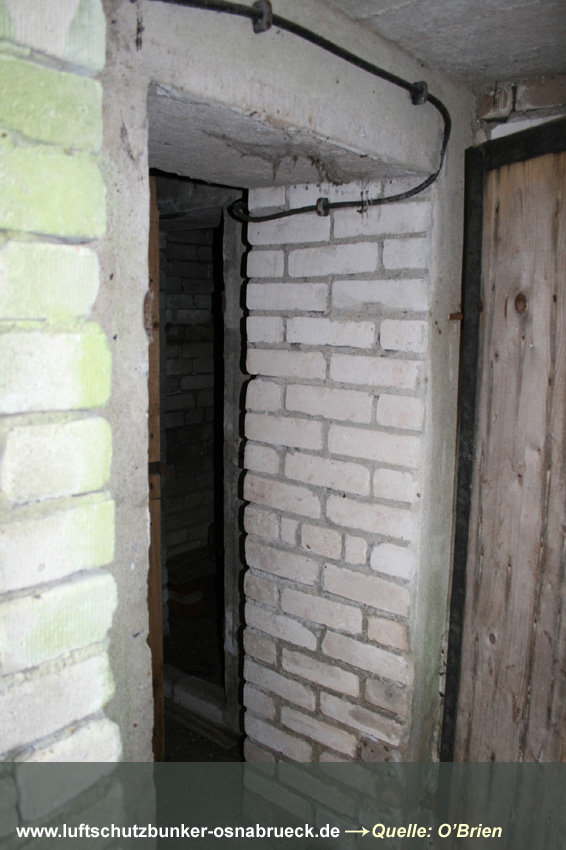 Die Länge des Grabens beträgt 8 Meter. Die Eingangsschleuse ist mit zwei Druckschutztüren aus Holz, "Marke Eigenbau", ausgestattet. Die Türen besitzen jeweils zwei Stahlriegel und Dichtungen an den Türrändern. Der Deckungsgraben war mit Beleuchtung ausgestattet. Der Notausstieg ist vermauert. Insgesamt befindet sich das Objekt in einem guten Zustand. Die Anlage steht in Privateigentum des anliegenden Hofbesitzers, dem unser Dank für die Begehung gilt.