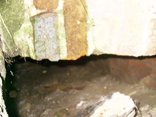Zu sehen ist ein Teil des halbrund gemauerten Sturzes des ehemaligen Einganges...
