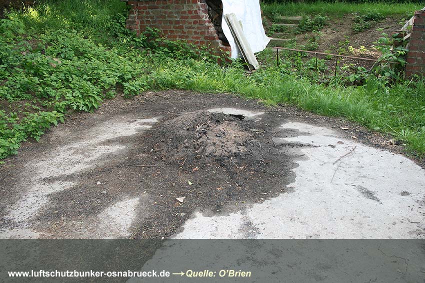 Nachtrag 03.05.10: In einem Garten auf dem Kalkhügel wurden weitere Betonreste aufgefunden, die höchstwahrscheinlich im Zusammenhang mit der Flak Kalkhügel stehen:
