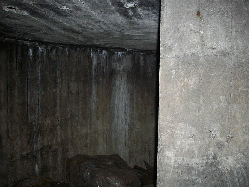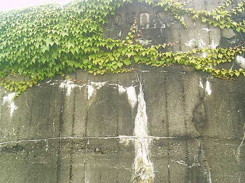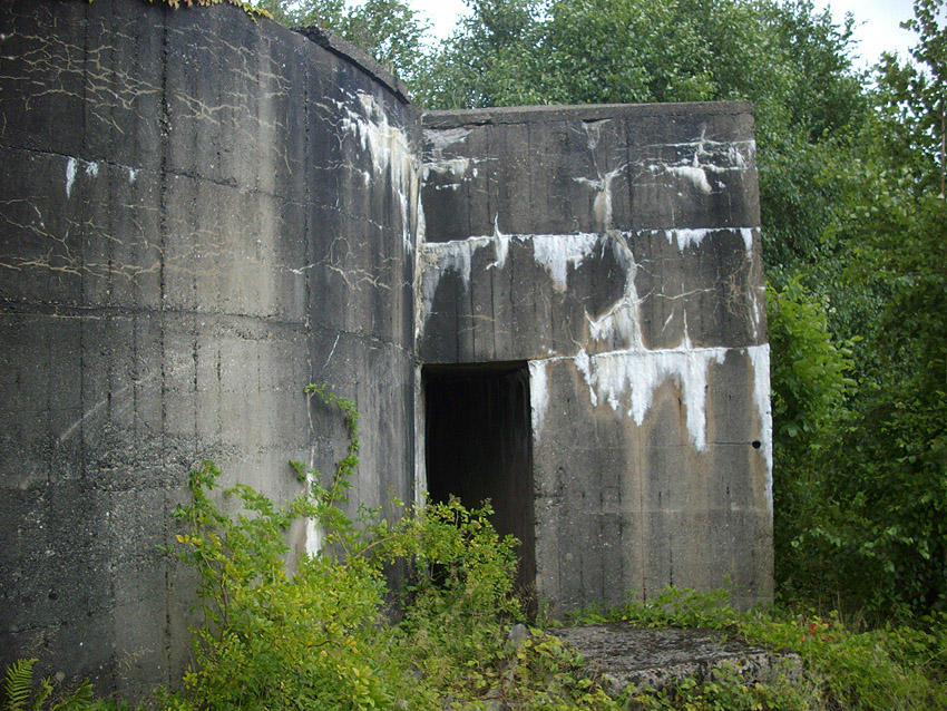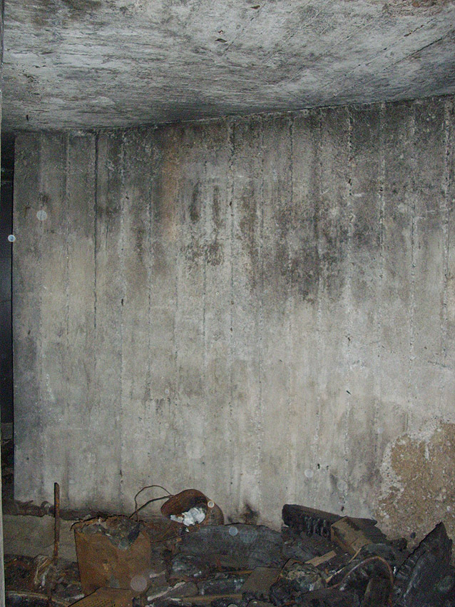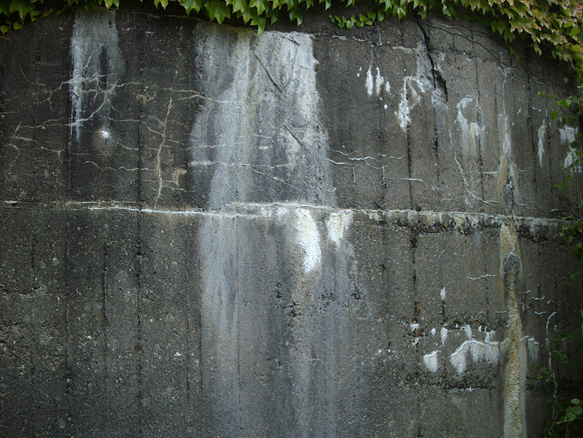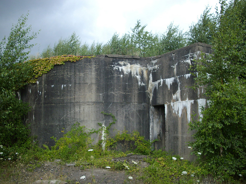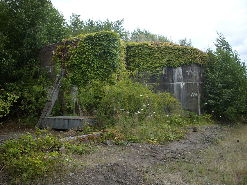An dem Bunker befindet sich die Inschrift "Kohlenbunker", durch Verfall linksseitig nur schwer zu erkennen. Es könnte sich jedoch auch um eine Absplitterung des Betons durch einen nahen Bombeneinschlag handeln...