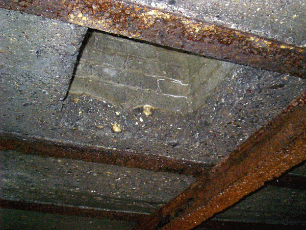 Diese Öffnung im Dach scheint eine Art Notausstieg gewesen zu sein. Eine Steigleiter fehlt jedoch...