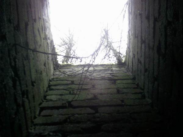 Rechts des Einganges befindet sich ein Beobachtungsfenster. Es kann aber auch sein, dass das Fenster erst nachträglich eingebrochen wurde...