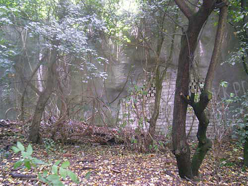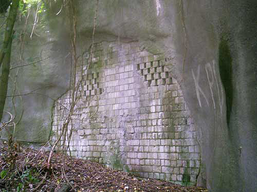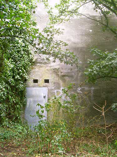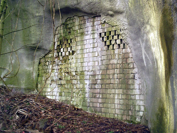 Einen zusätzlichen dritten Eingang (eventuell auch Notausstieg) könnte das folgende Objekt dargestellt haben. Die Luke selbst und die Klinkerung scheinen jedoch neueren Datums zu sein. Das Objekt befindet sich an den Bahnschienen in Nähe der anderen Eingänge: