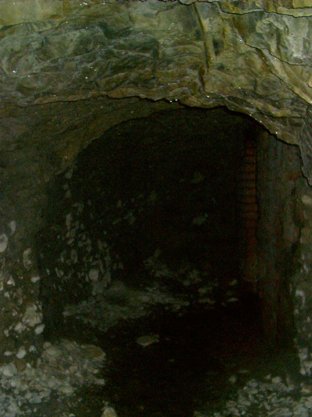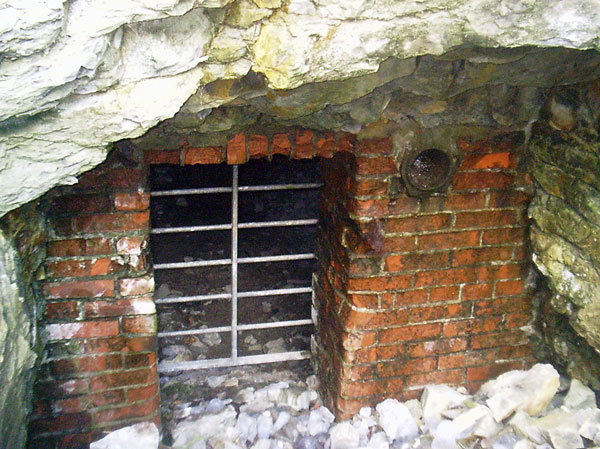 Hier war an der linken Seite eine Sitzbank aus Holz in den Beton eingelassen.