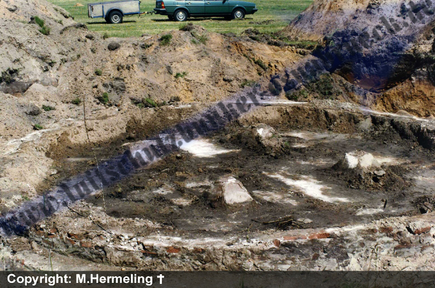 Dieses Betonfundament diente als Bettung eines 8,8 cm-Flakgeschützes am Rande der Startbahn und wurde 1996 bei der großen Munitionsräumungsaktion freigelegt.