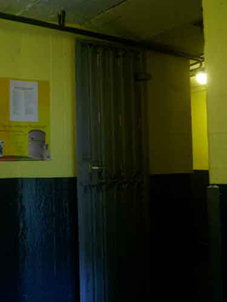vor einem der Eingänge detonierte und die feste Betonwand eindrückte,