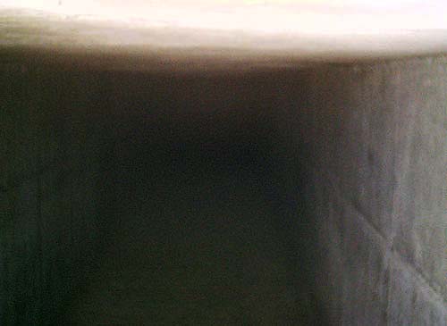 Aus dem Inneren des Eingangsbereiches strömt ein starker Luftzug nach außen: