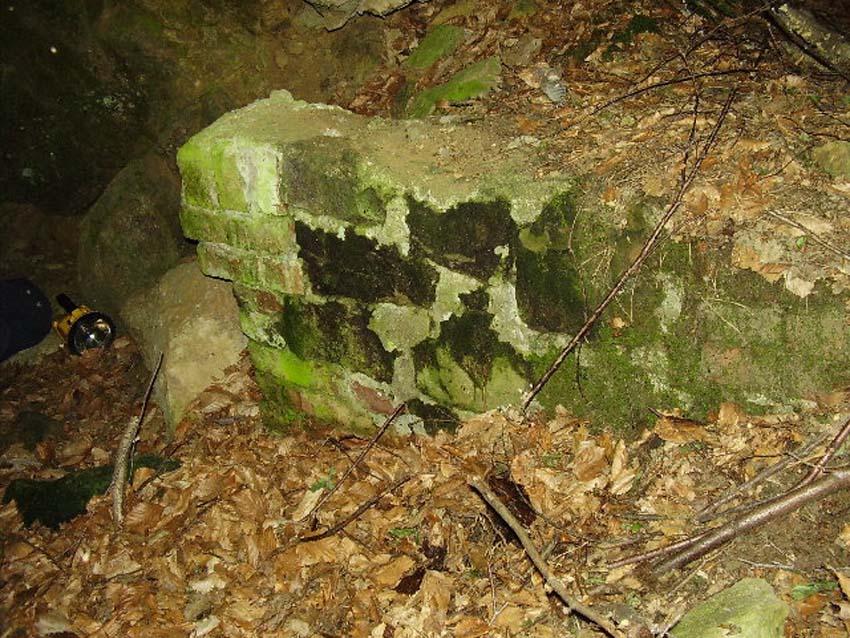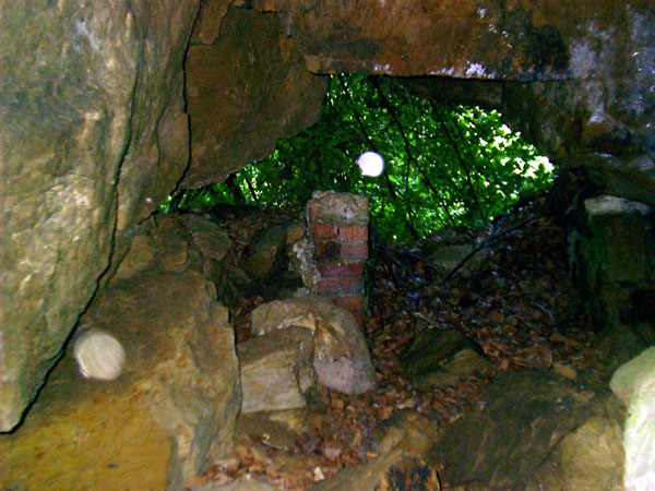 Hagen a. Tw. = Hagen am Teutoburger Wald. Der Stollen ist etwa 7 Meter lang und grob in den Fels gehauen, der Eingang wurde wohl durch Naturstein und Klinker befestigt.