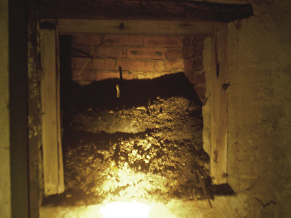 Man kann mittlerweile aufgrund Verwitterung durch den Eingangsbau hindurch sehen...