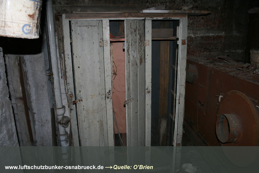 Es geht hinein durch die Schleuse im dritten Stockwerk des Bunkers. Hier an der Oberkante des Hanges, in den der Bunker eingebaut wurde, ist er ebenerdig im dritten Geschoss zu betreten: