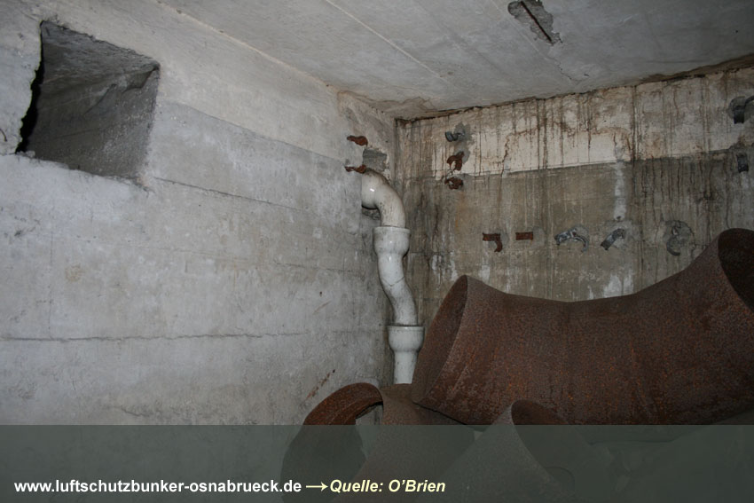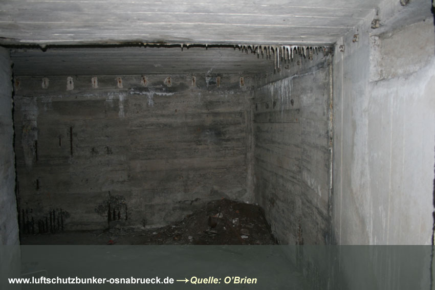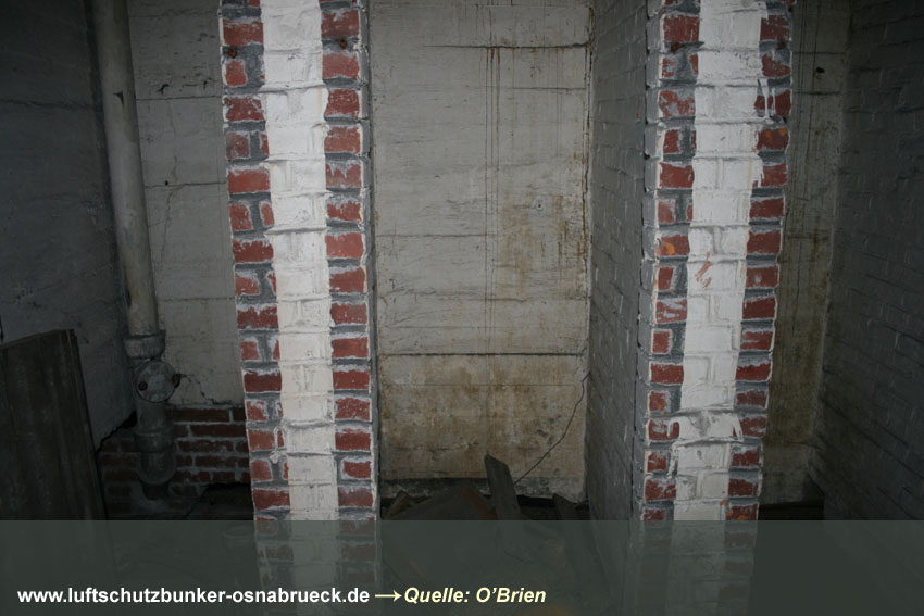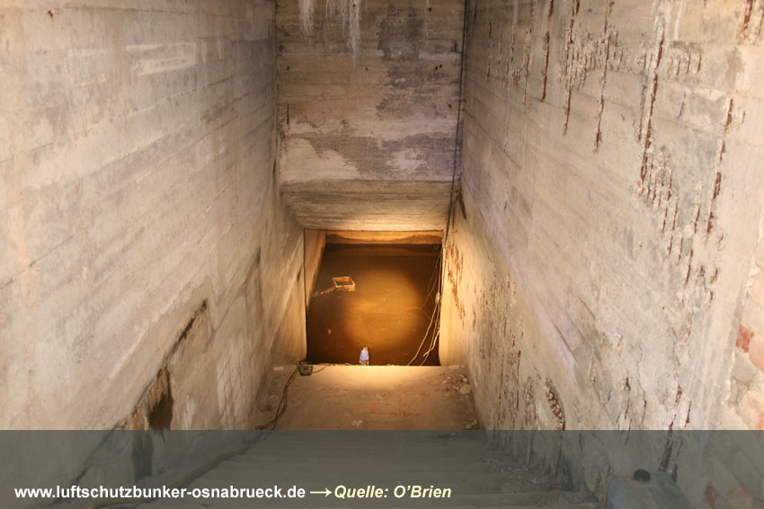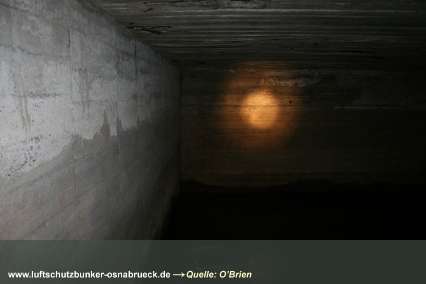 Hinab in den den Keller des Bunkers. Dieser erstreckt sich unter dem Hauptbunkerkörper und als externer Tunnel fort bis zum heutigen Gleis 14 und steht unter Wasser: