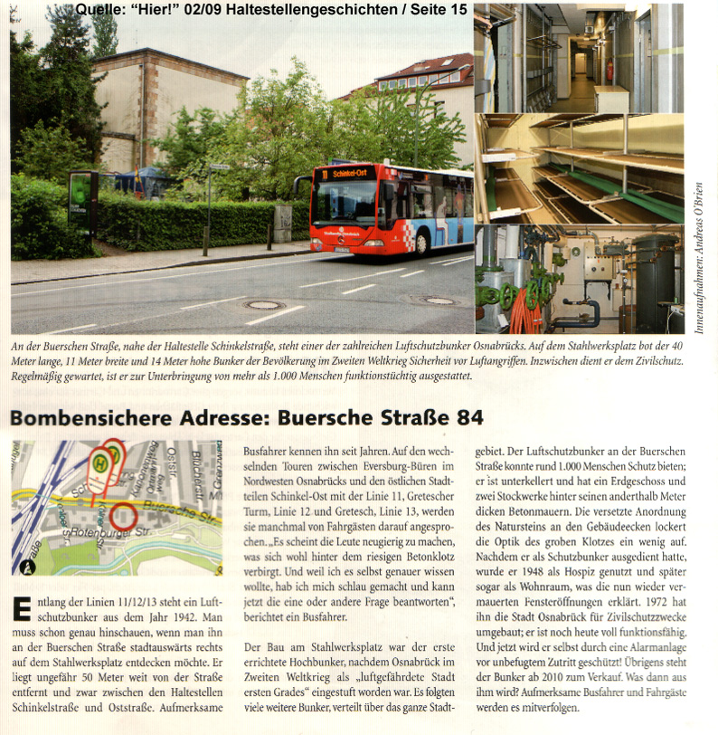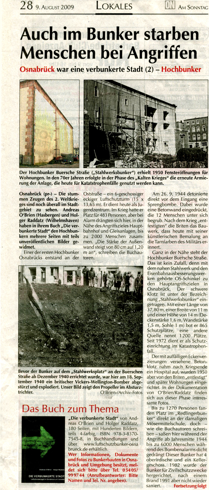 Neue Serie über Bunker in Osnabrück in der "ON" / Vorstellung des Buches "Die verbunkerte Stadt" / Teil 3 "Wer hat Informationen zum Otto-Bunker" vom 16.08.09: