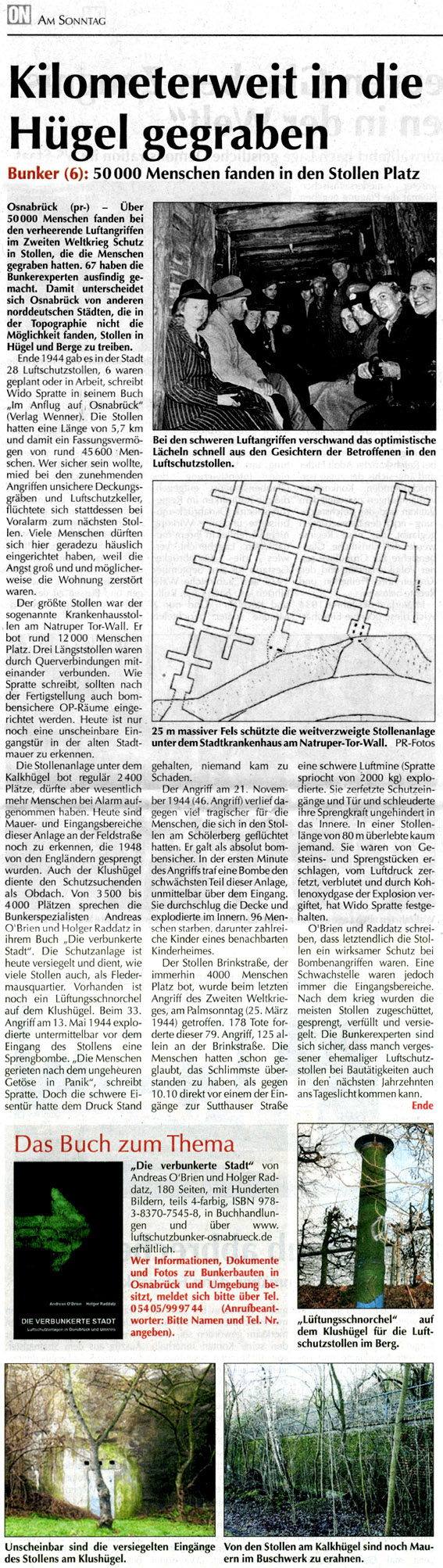 Neue Serie über Bunker in Osnabrück in der "ON" / Teil 6 (letzter Teil) "Kilometerweit in die Hügel gegraben" vom 06.09.09: