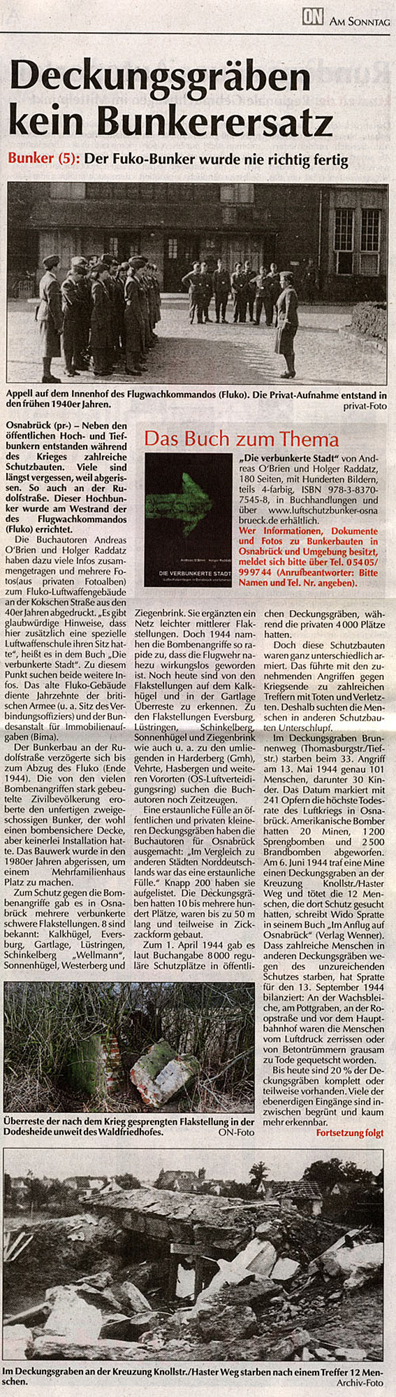 Neue Serie über Bunker in Osnabrück in der "ON" / Teil 5 "Deckungsgräben kein Bunkerersatz" vom 30.08.09: