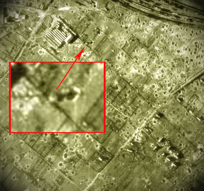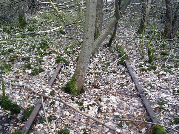 Geklärt am 31.08.07: Das vermutete Objekt aus der Luft gesehen ist eine optische Täuschung. Es handelt sich um den Lauf der Hase, welche unter und zwischen den Gleisbetten entlang fließt.