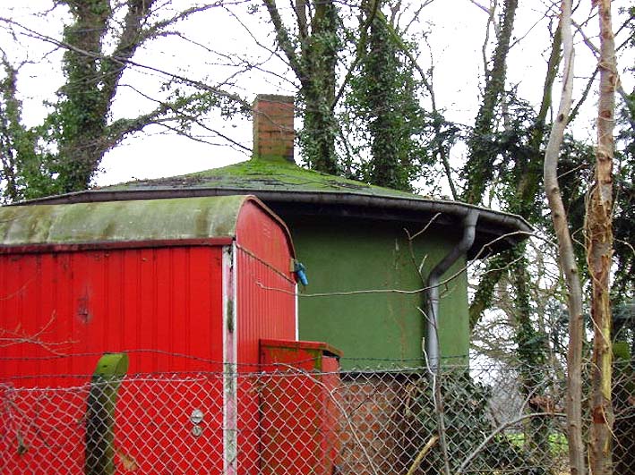 Was sind dies für zwei Rundbauten? Sind es eventuell Behelfsbunker? Nach Hinweisen sollen dies zwei "Wassertürme" sein. Die geringe Höhe spricht jedoch eher dagegen. Die leichte Bauweise mit Fenstereinschnitten (sollten diese nicht nachträglich eingebracht worden sein) wiederum spricht jedoch auch gegen LS-Bauten. Wer hat Informationen?