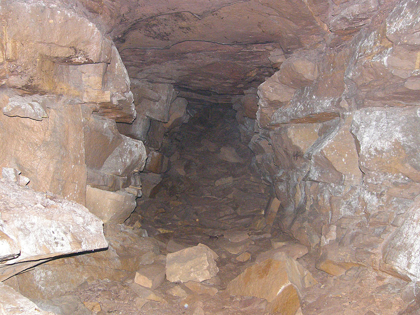 Blick vom Gitter in den Stollen