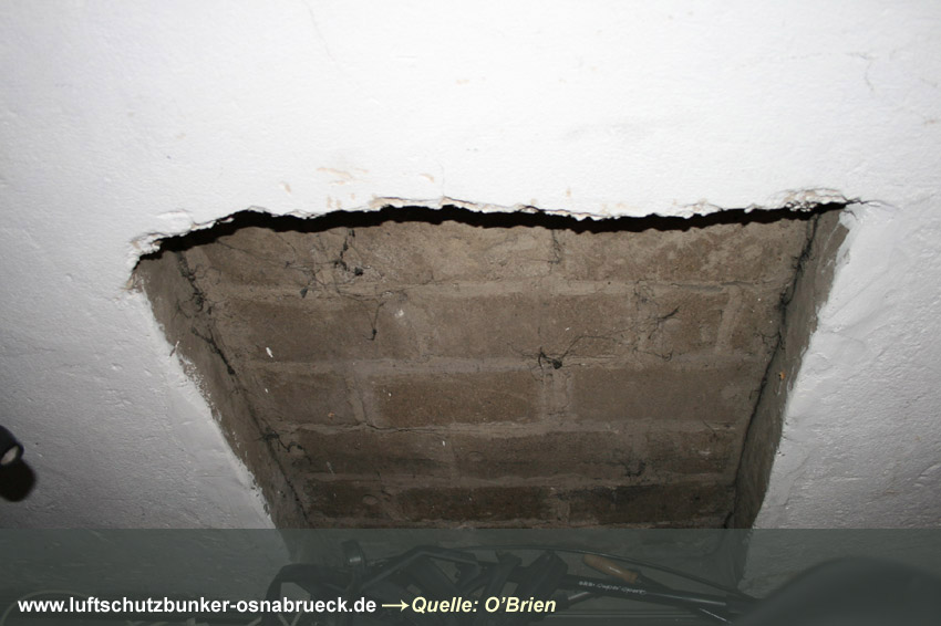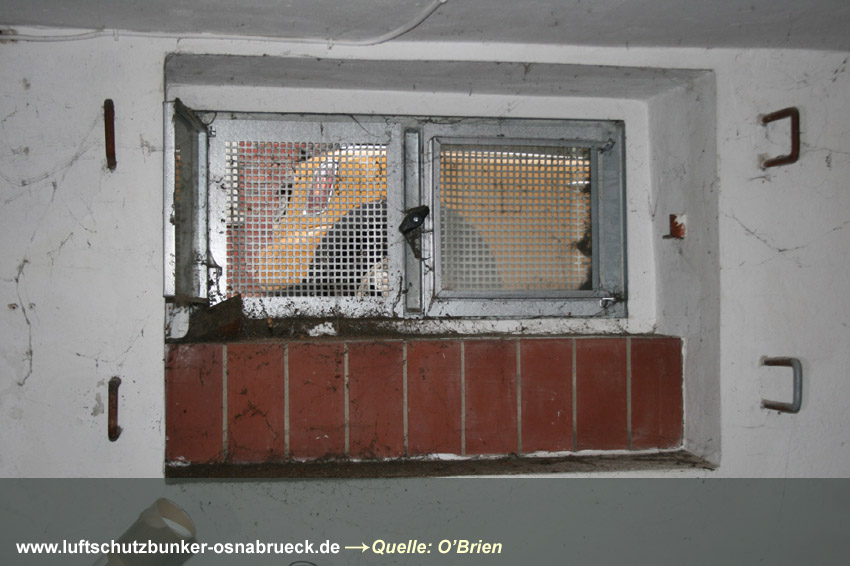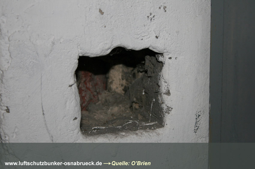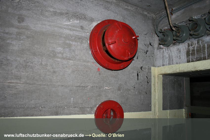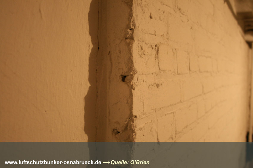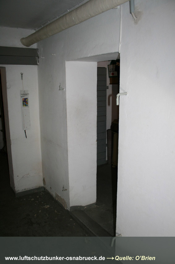 Es handelt sich um einen Kellerraum, welcher in der Mitte durch eine drei-Ziegelstein-starke Wand geteilt wurde. Es wurde ein 1m x 1m großes Quadrat als Sollbruchstelle mit nur 1-lagiger Ziegelsteinreihe belassen. Ein Notausstieg zum "aufbrechen". Eine Gasschutztür mit Dichtungsfalz wurde verbaut. Die innenliegenden Fensterabdeckungen (die Fenster waren Notausstiege) wurden durch einen Sperrbalken verschlossen. Ringsherum wurden an den Abdeckungskanten Dichtungen eingebaut, um den Raum vor Gaseintritt zu sichern.